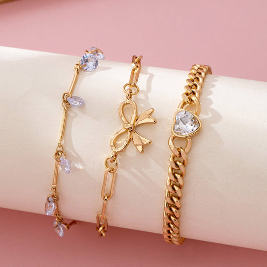 Bow & Crystal Heart Charm Layered Bracelet Set | 80B1628