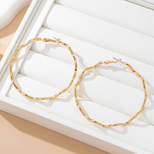 Oversized Hammered Gold Wavy Hoop Earrings | 80E61830