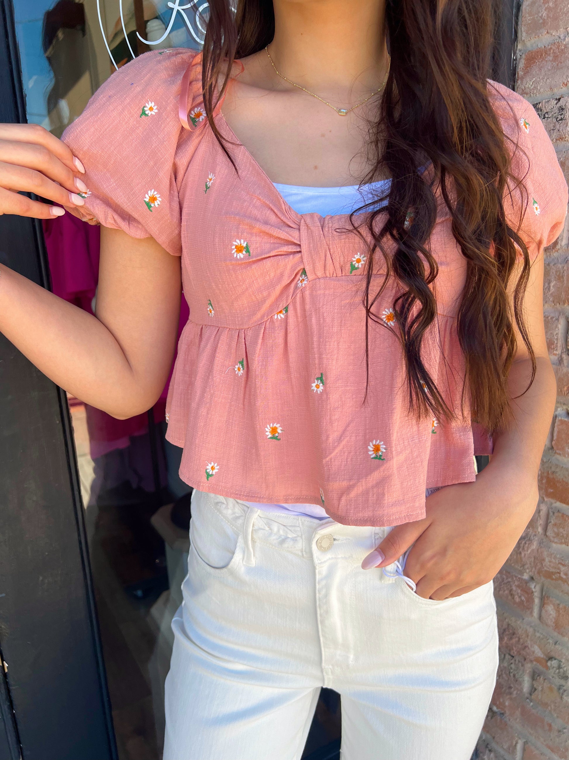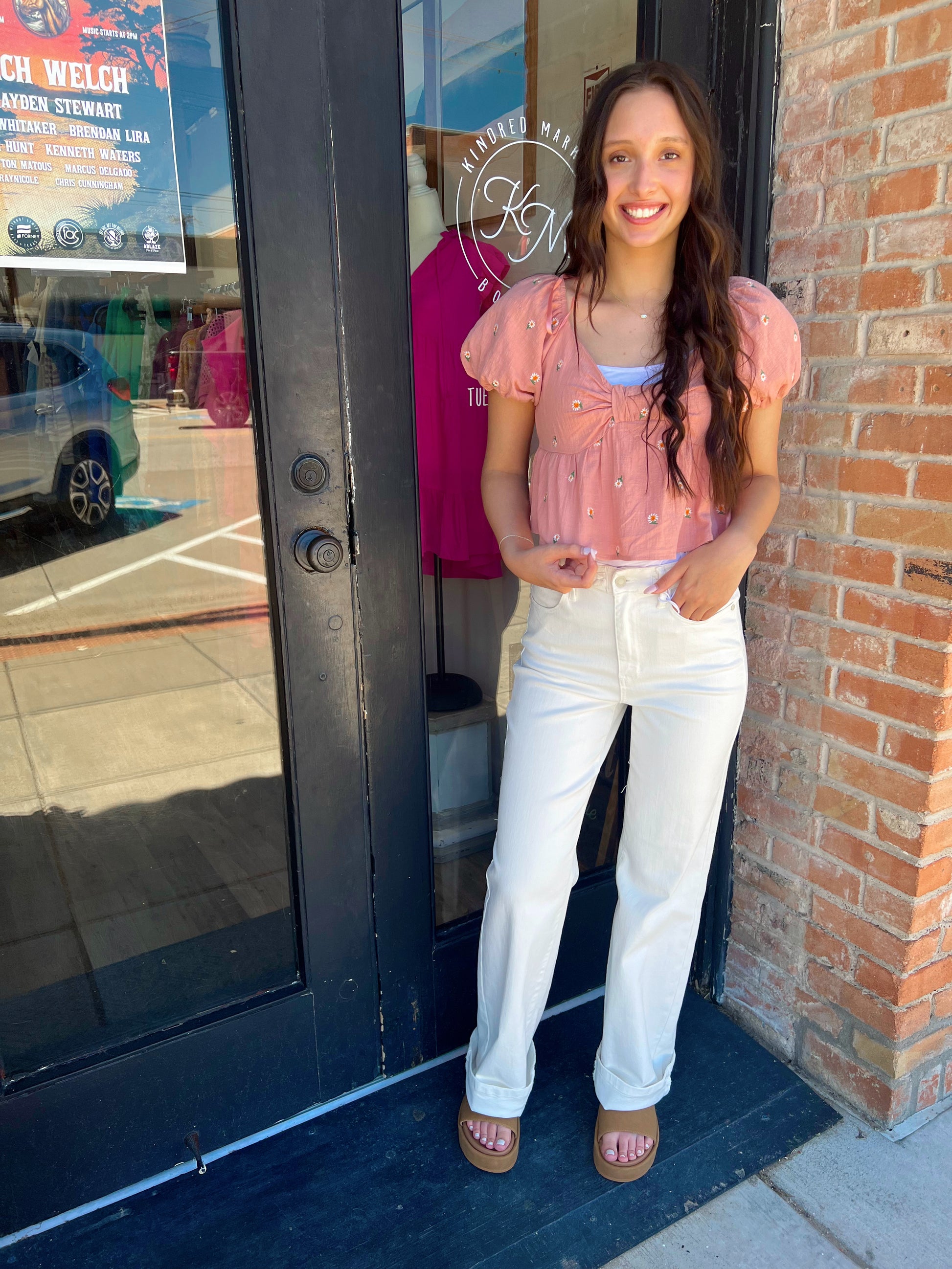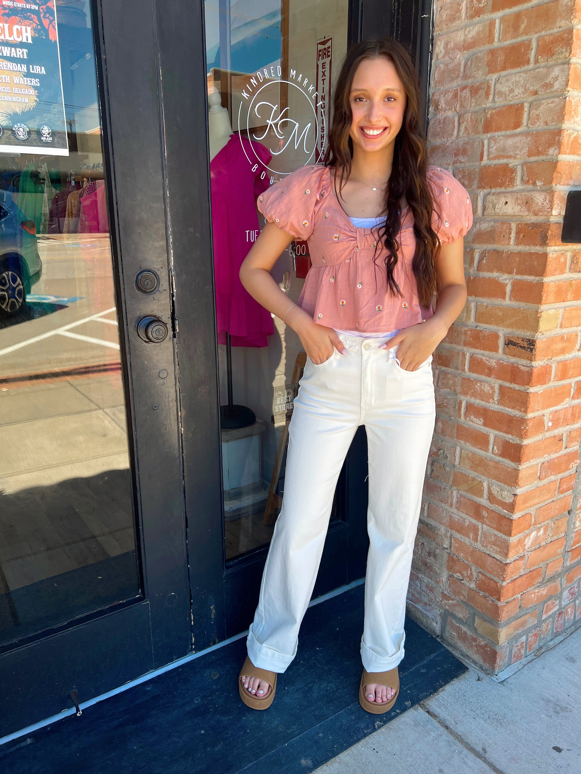 The Clara Blush Floral Blouse is the perfect summer top! The color, the florals, and the style are all SO good! The color of this top is the most beautiful light blush color. It has cute little floral details throughout the shirt. It is a little bit shorter than most blouses but not too cropped. Pair this with your cute blue jean shorts or jeans for pictures or date night! The feel of the top is very lightweight and is made of 100% rayon.