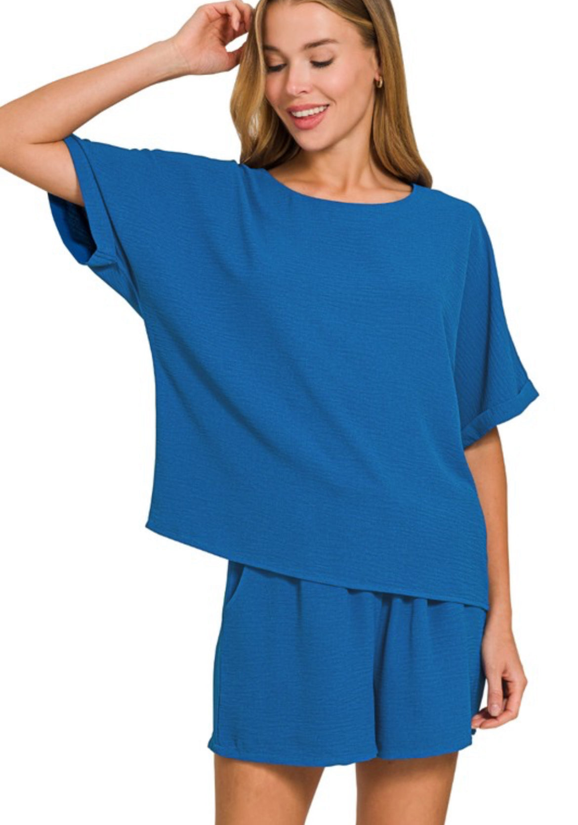 Elevate your casual wardrobe with these stunning Royal Blue Shorts from the Divina Set. Featuring a comfortable elastic waistband that ensures a perfect fit, these shorts are designed for both style and comfort. Pair with the matching top for a coordinated look, or mix with your favorite basics for versatile everyday wear. The vibrant royal blue hue adds a touch of elegance to your relaxed moments.