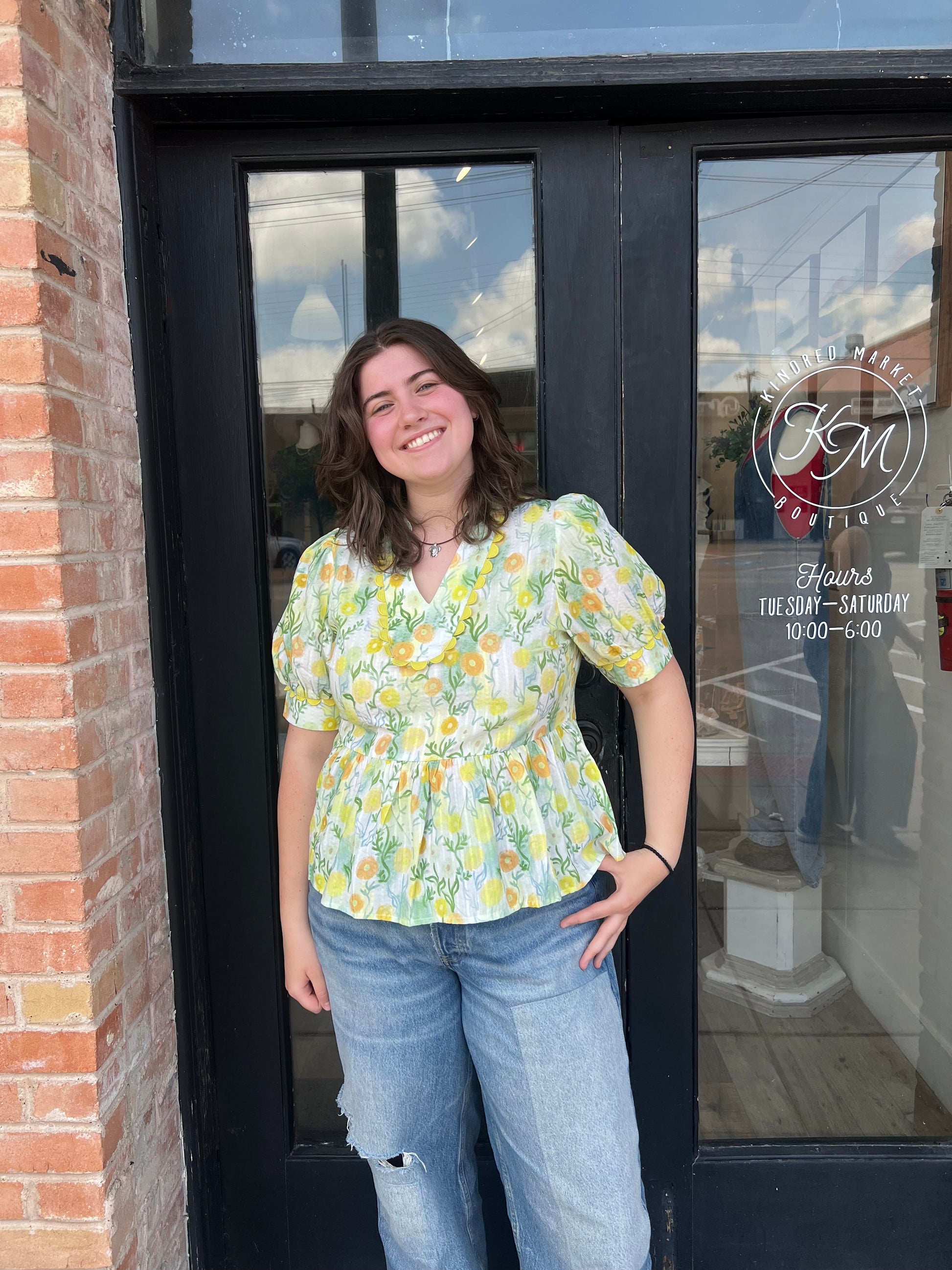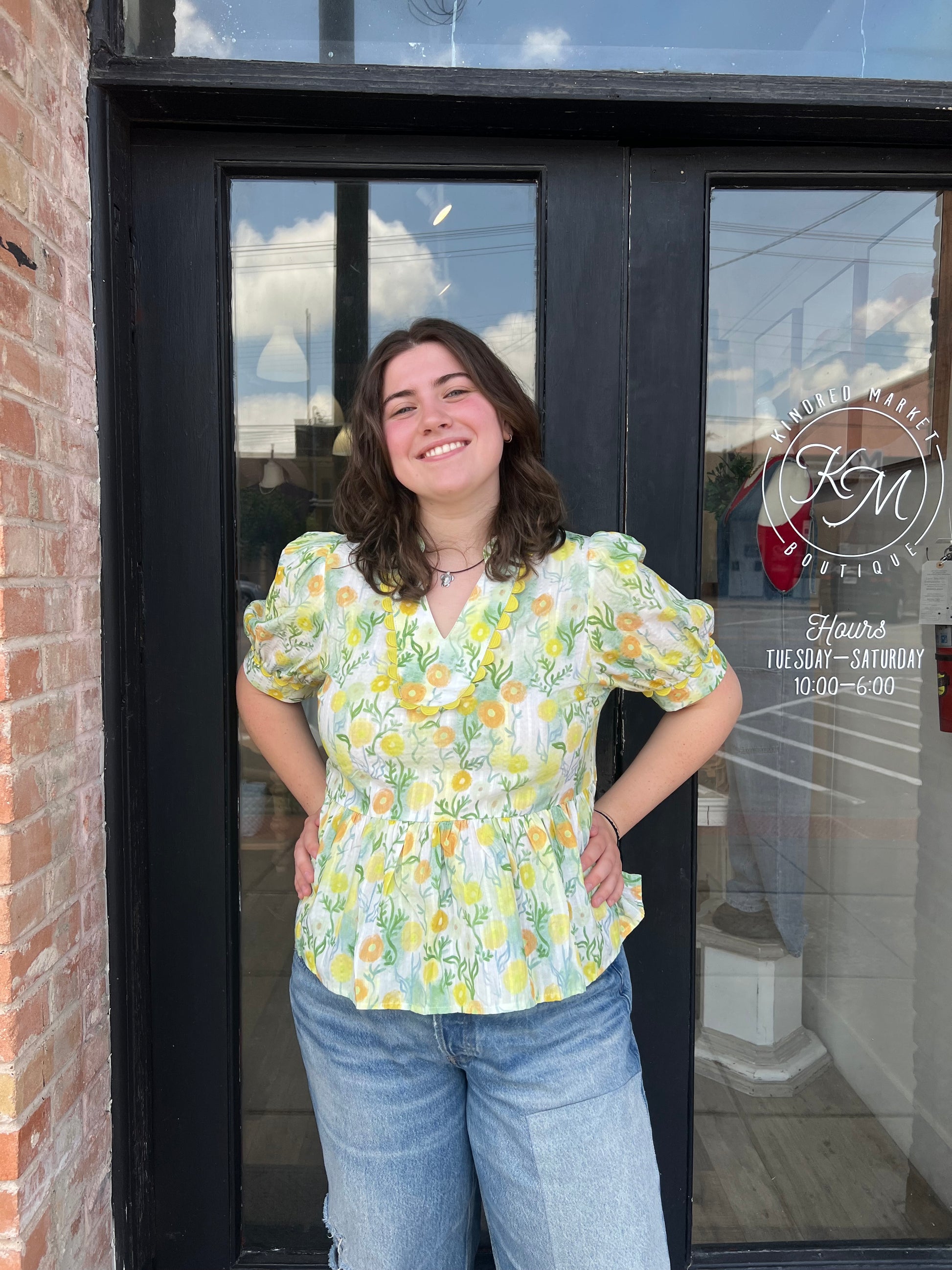 Brighten your wardrobe with the Elizabeth Floral Blouse, featuring charming summer yellow floral details that add a fresh, cheerful touch. Its cute design pairs perfectly with casual or dressy looks, making it a versatile favorite for warm days. Embrace effortless style and comfort with this delightful blouse that captures the essence of sunny, carefree moments.