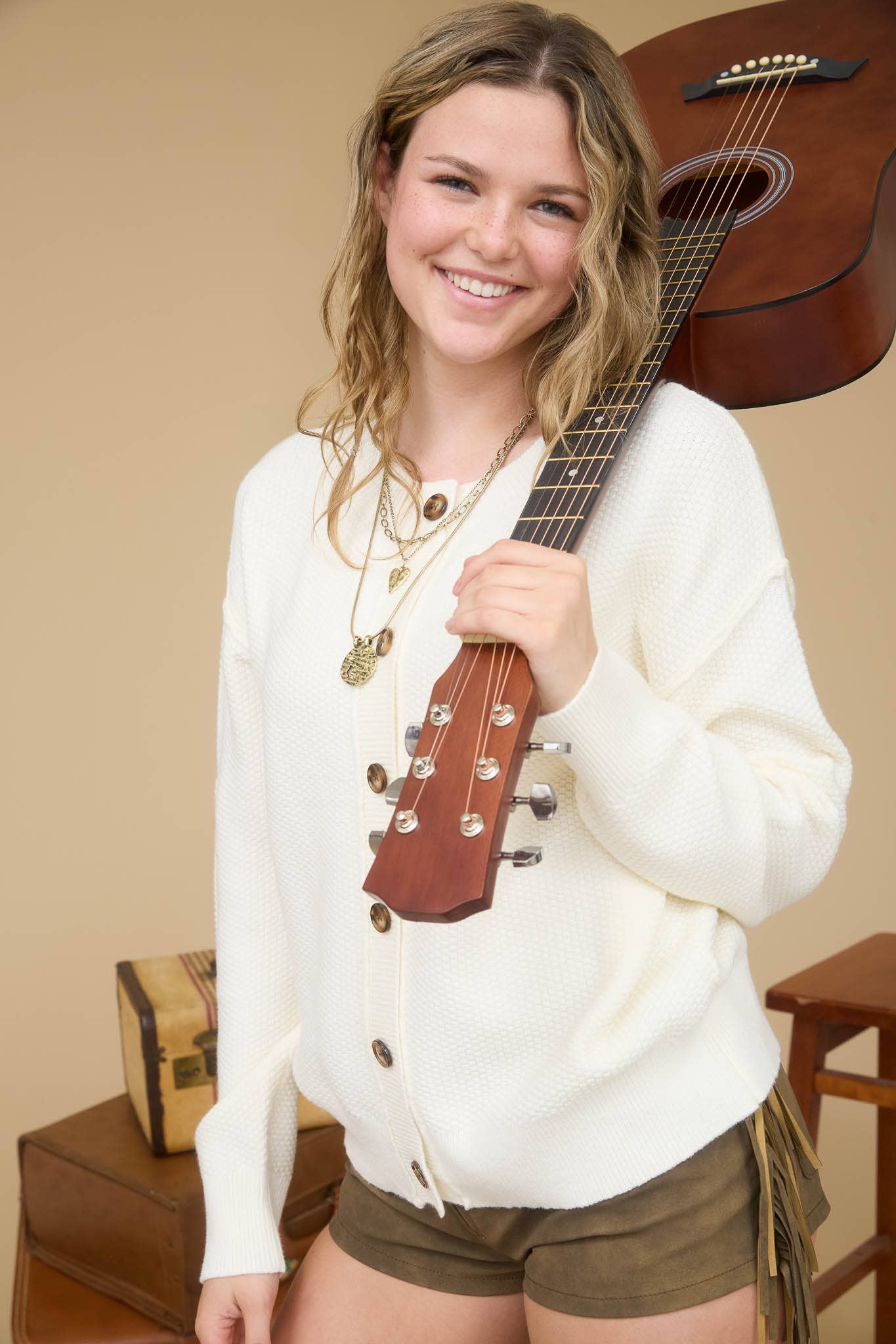 Experience cozy comfort with the cole Exposed Seam Button Down Knit Cardigan. Crafted from soft, warm knit fabric, this cute cardigan offers lightweight warmth and an effortlessly stylish look. Its exposed seams add subtle detail, making it perfect for layering on chilly days while keeping you comfortably snug. A versatile addition to your wardrobe that blends softness and style with every wear.