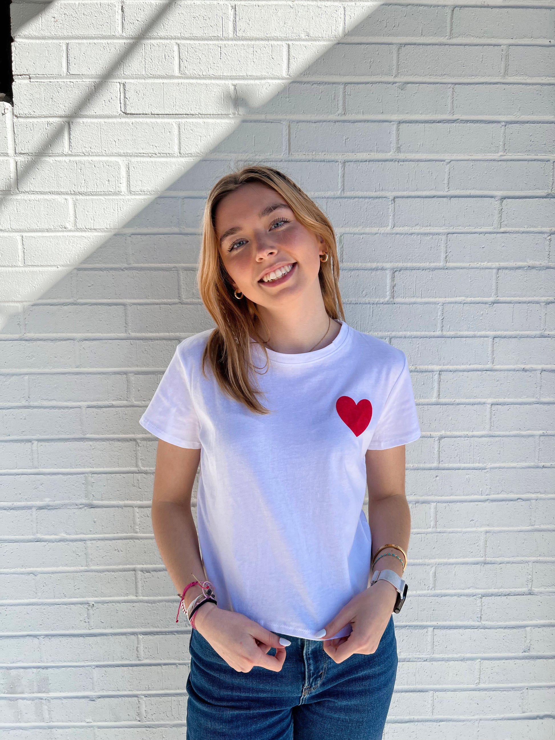 The Harper heart crop tee is a super cute valentines day outfit option. It is such a cute option for teachers on valentines week! Or a casual but cute options for teens to wear out on a girls day!