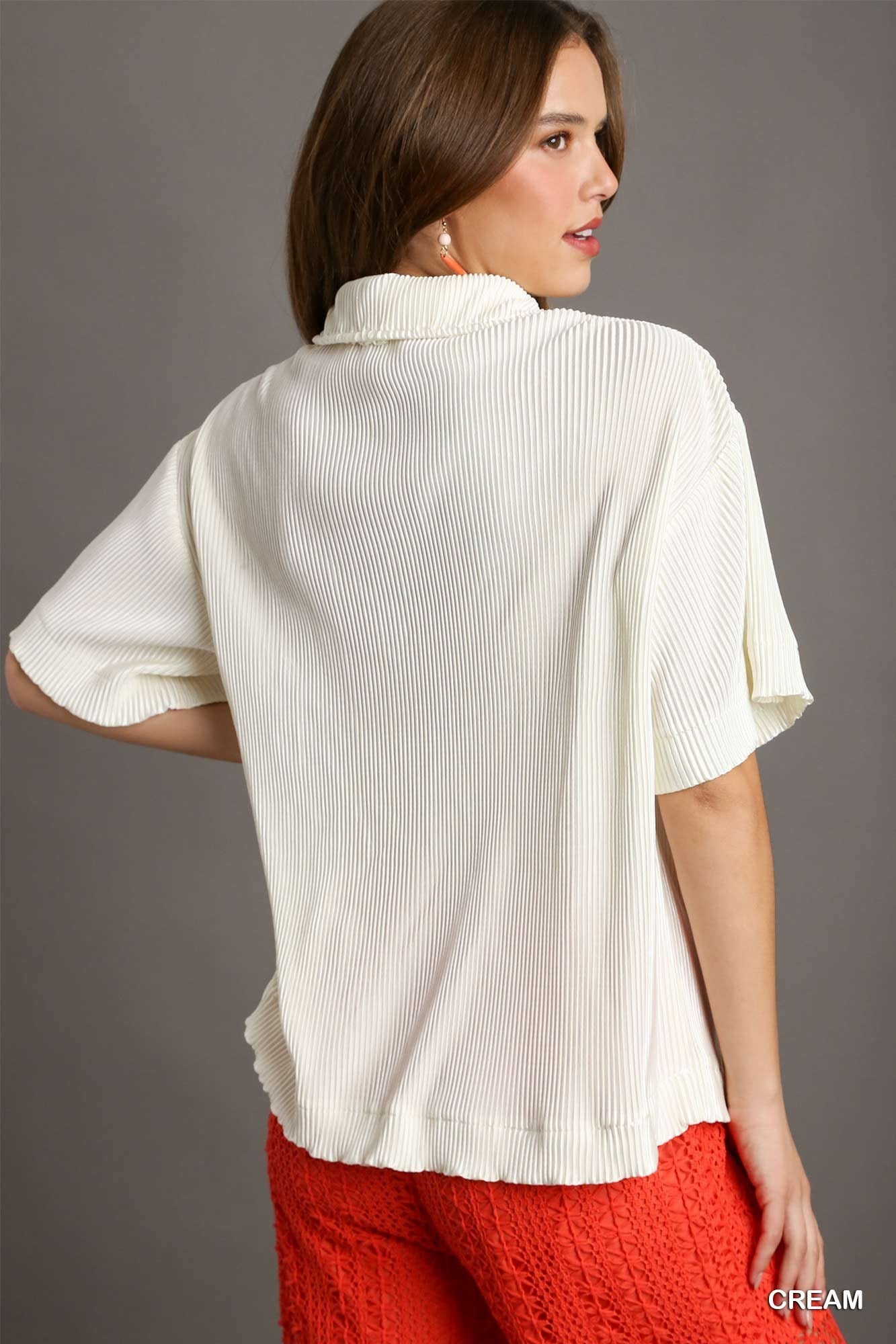 Luna Satin Pleated Button Up