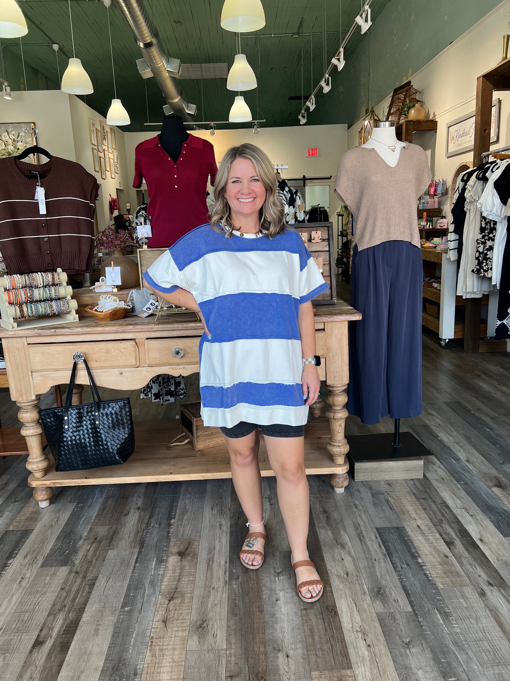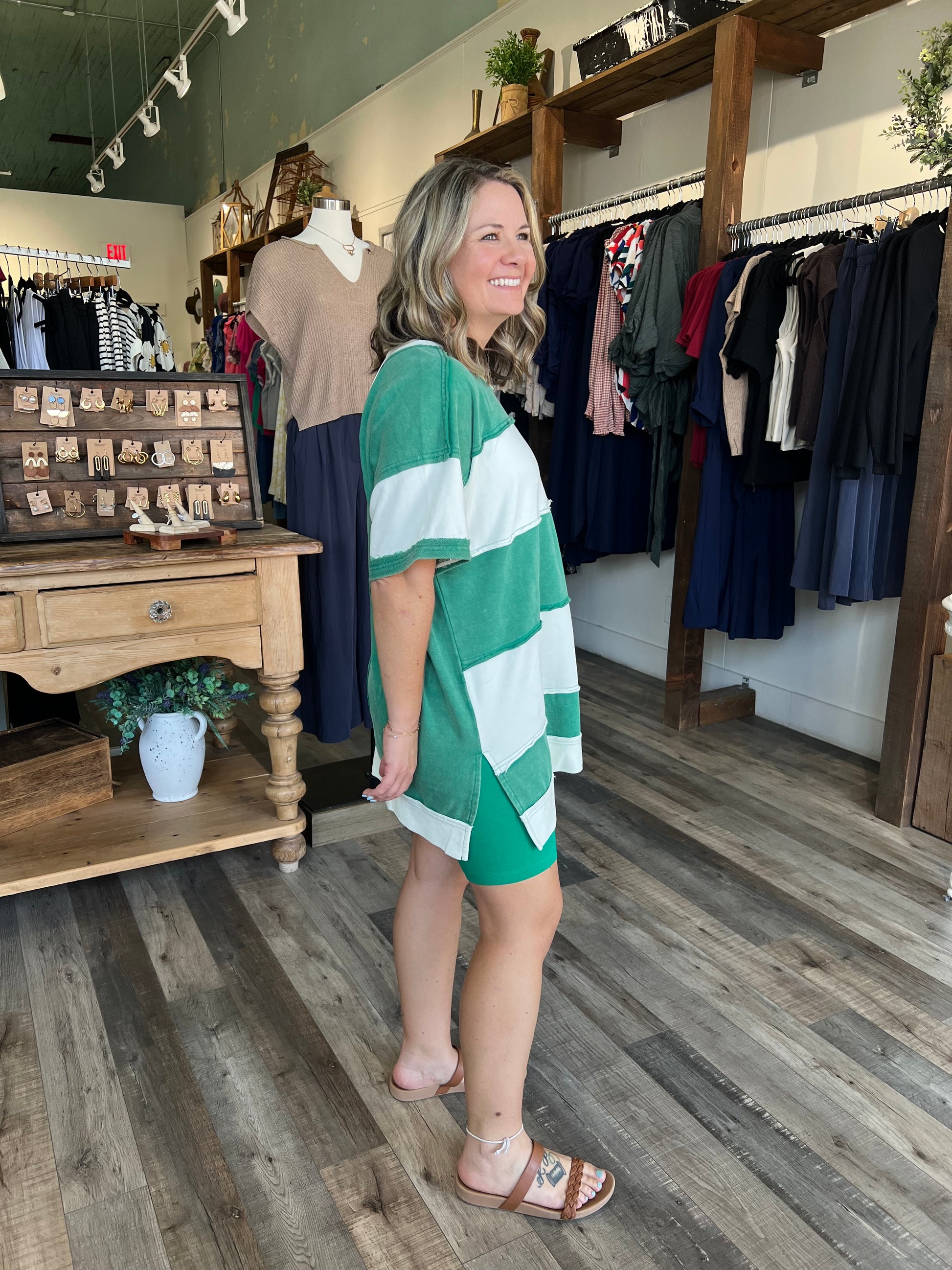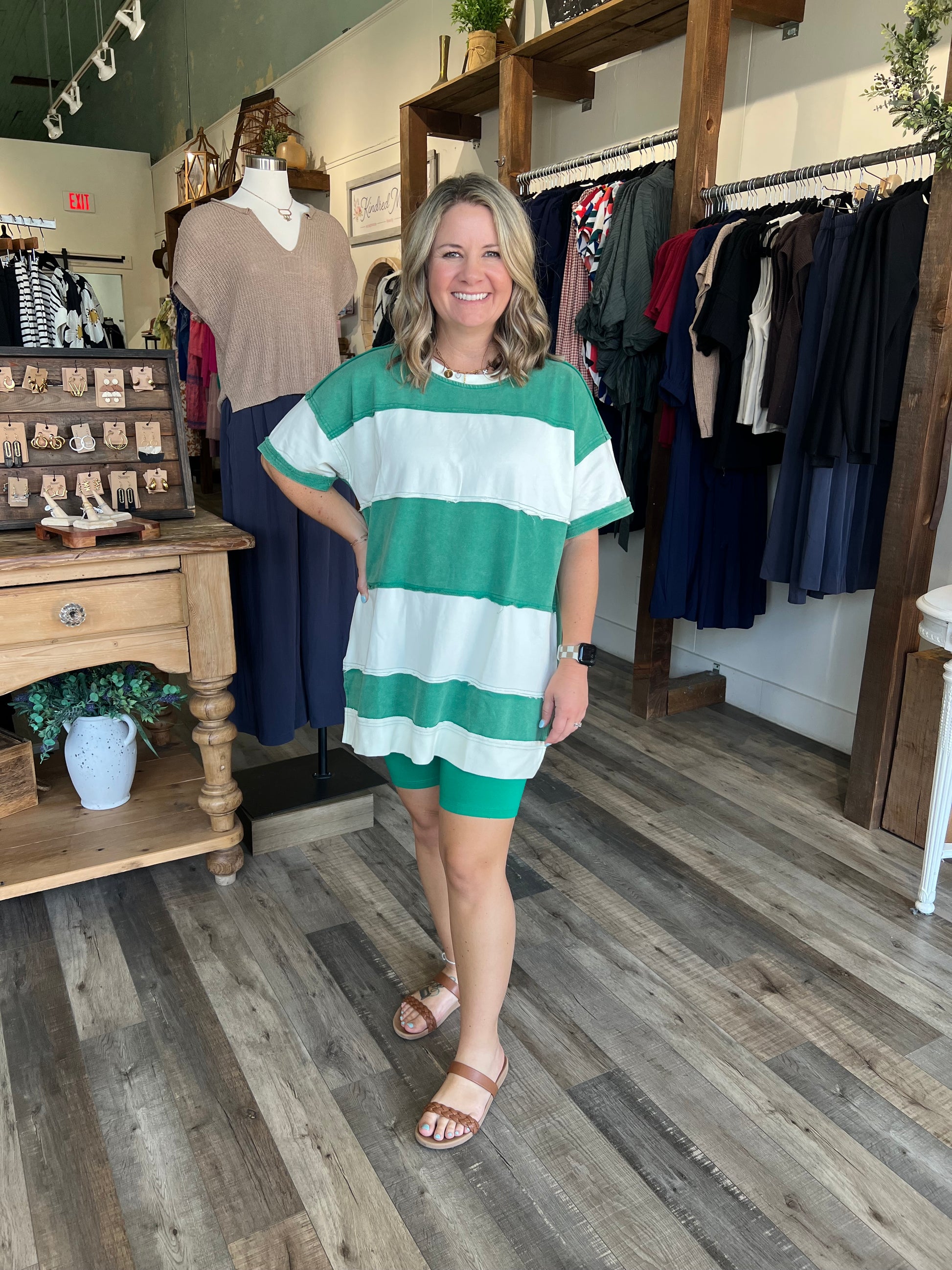Elevate your casual wardrobe with the Marci Stripe T-Shirt Mini Dress, available in vibrant Kelly Green and classic Blue with White Stripes. This dress combines effortless style with comfortable wear, making it perfect for day-to-night looks. Its flattering cut and bold stripes ensure you stand out, while the soft fabric keeps you comfortable all day long. Choose a versatile dress that brings color and confidence to every occasion.