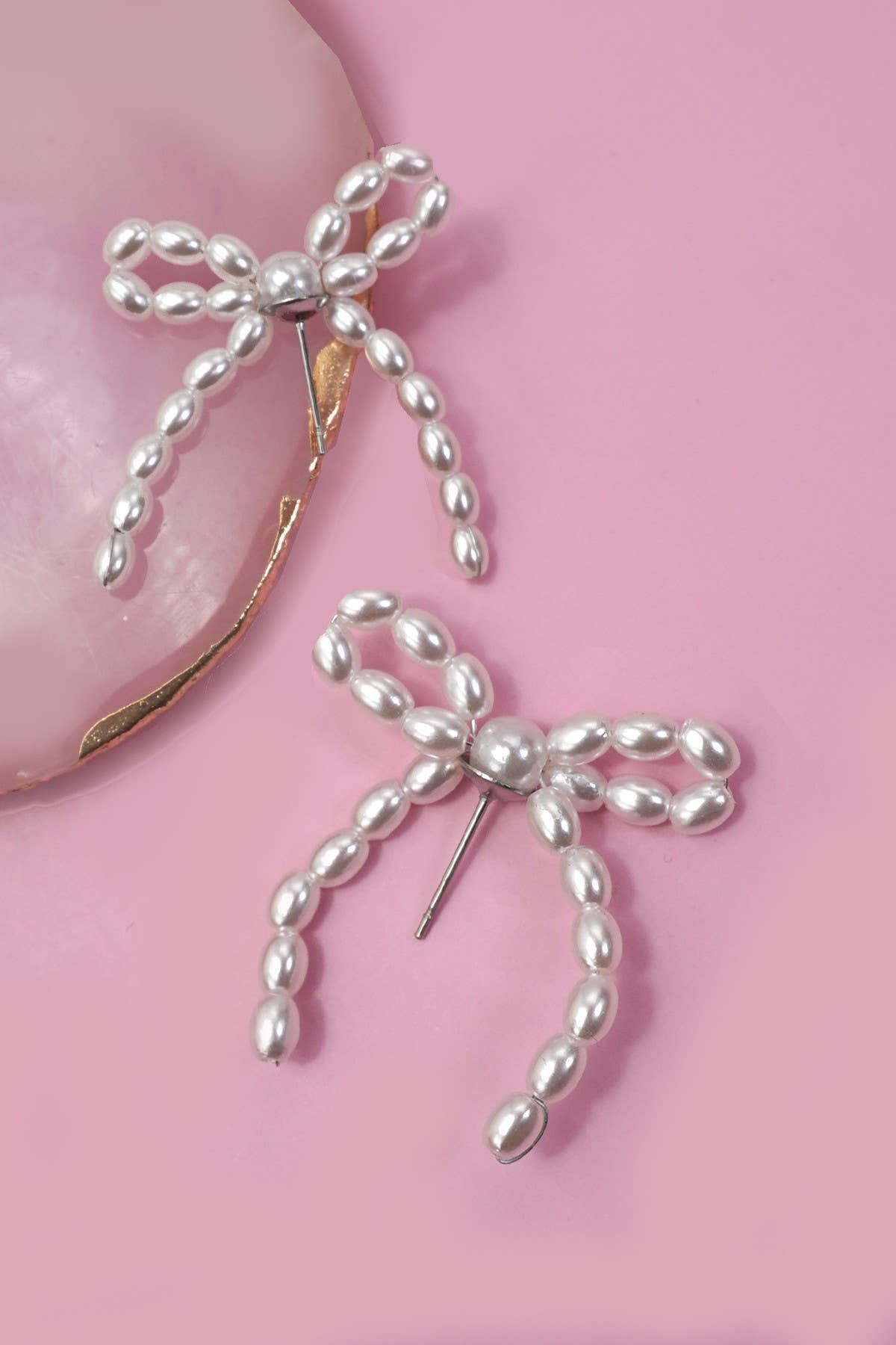 PEARL BEAD BOW RIBBON EARRINGS