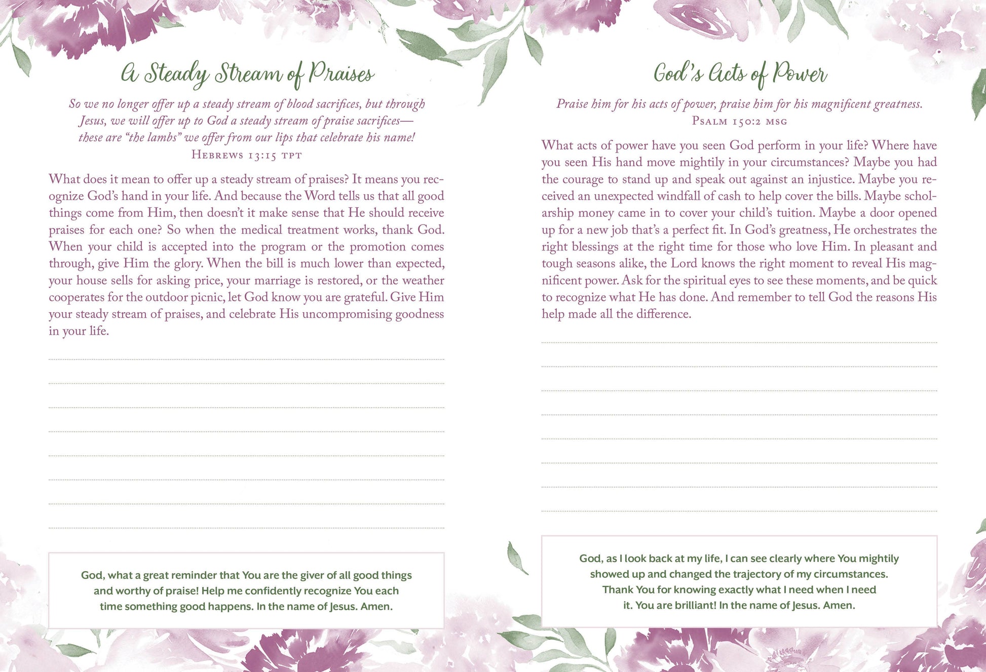 This lovely devotional journal, inspired by Psalm 35:27–28 (". . .I'll tell the world how great and good you are, I'll shout Hallelujah all day, every day") features nearly 200 praise-themed devotions for your beautiful heart. Created to encourage you to "raise a hallelujah" no matter what you're experiencing in life, each devotional reading is complemented by an inspiring scripture selection, prayer starter, and journaling space.