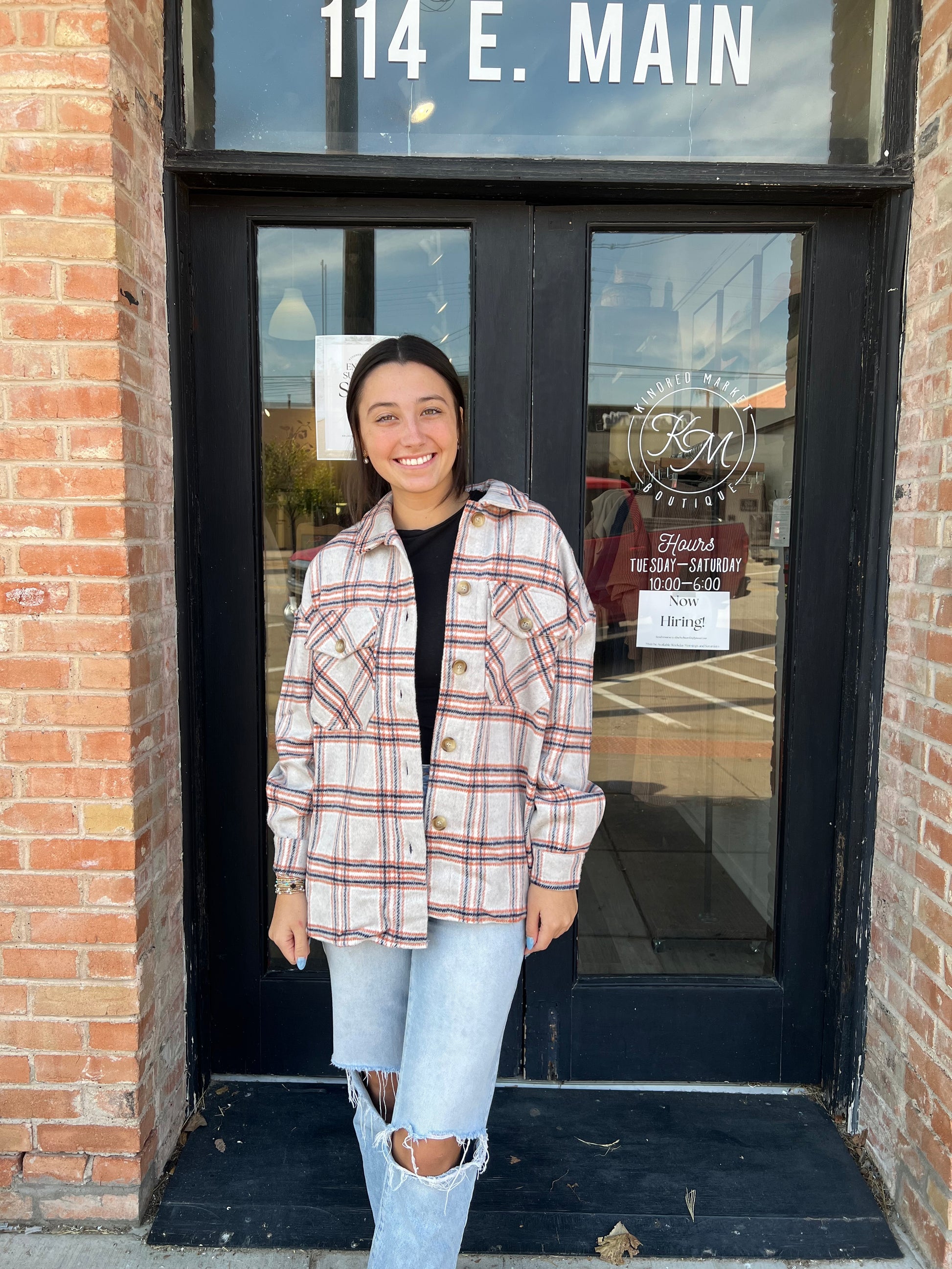 Embrace cozy style with the Shayla Beige Flannel Shacket. Featuring a classic plaid pattern in soft beige tones, this shirt jacket blends warmth and versatility effortlessly. Perfect for layering, it adds a rustic yet polished touch to any outfit, ideal for crisp mornings or casual outings. Durable flannel fabric ensures comfort and long-lasting wear, making it a must-have for your fall and winter wardrobe.