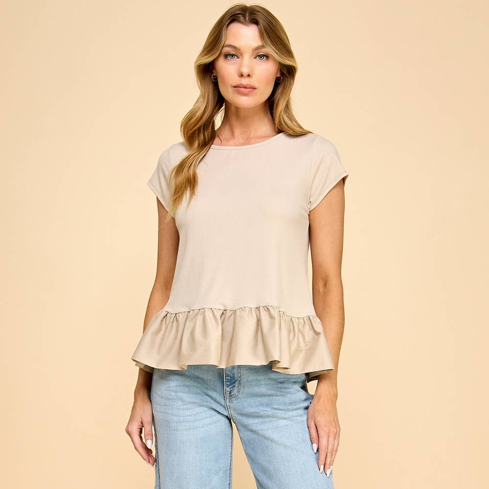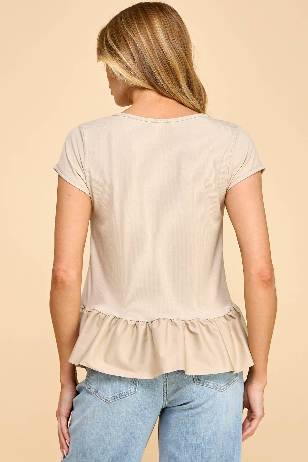 This solid ribbed top showcases a sleek, textured design with a stylish solid contrast for added dimension. Its fitted silhouette offers a flattering look, while the contrasting elements enhance visual appeal. Perfect for layering or wearing solo, this versatile piece effortlessly combines comfort and modern style for any casual-chic outfit.