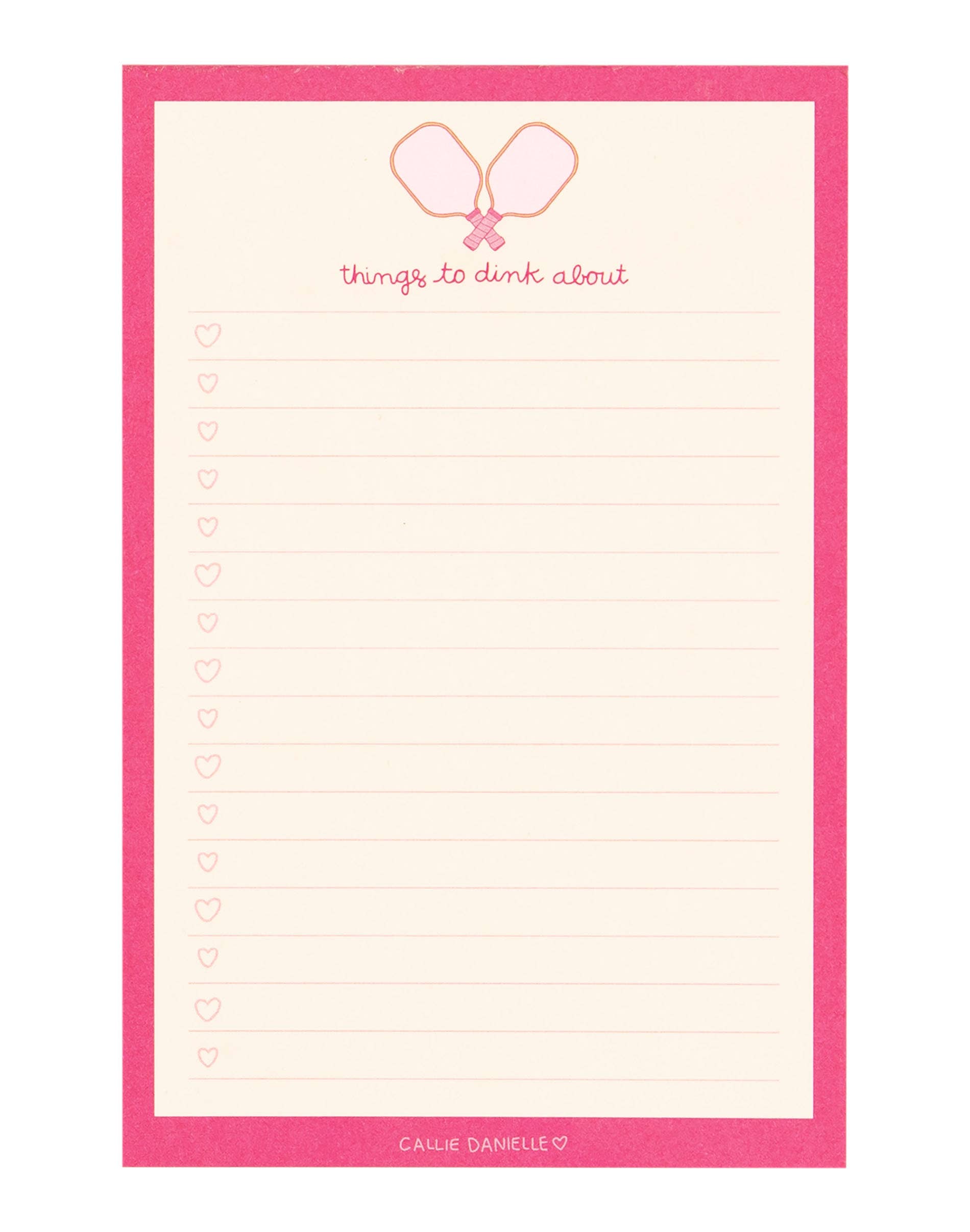 Get ready to dink and think with our Things to Dink About Pickleball Notepad! Perfectly sized at 4x6, each page features lined checklists with heart checkboxes. Whether you're planning your strategy for the next match or jotting down ideas, this notepad is your go-to companion for daily organization. Ideal for any pickleball enthusiast, dink into action with this cute desk accessory!
