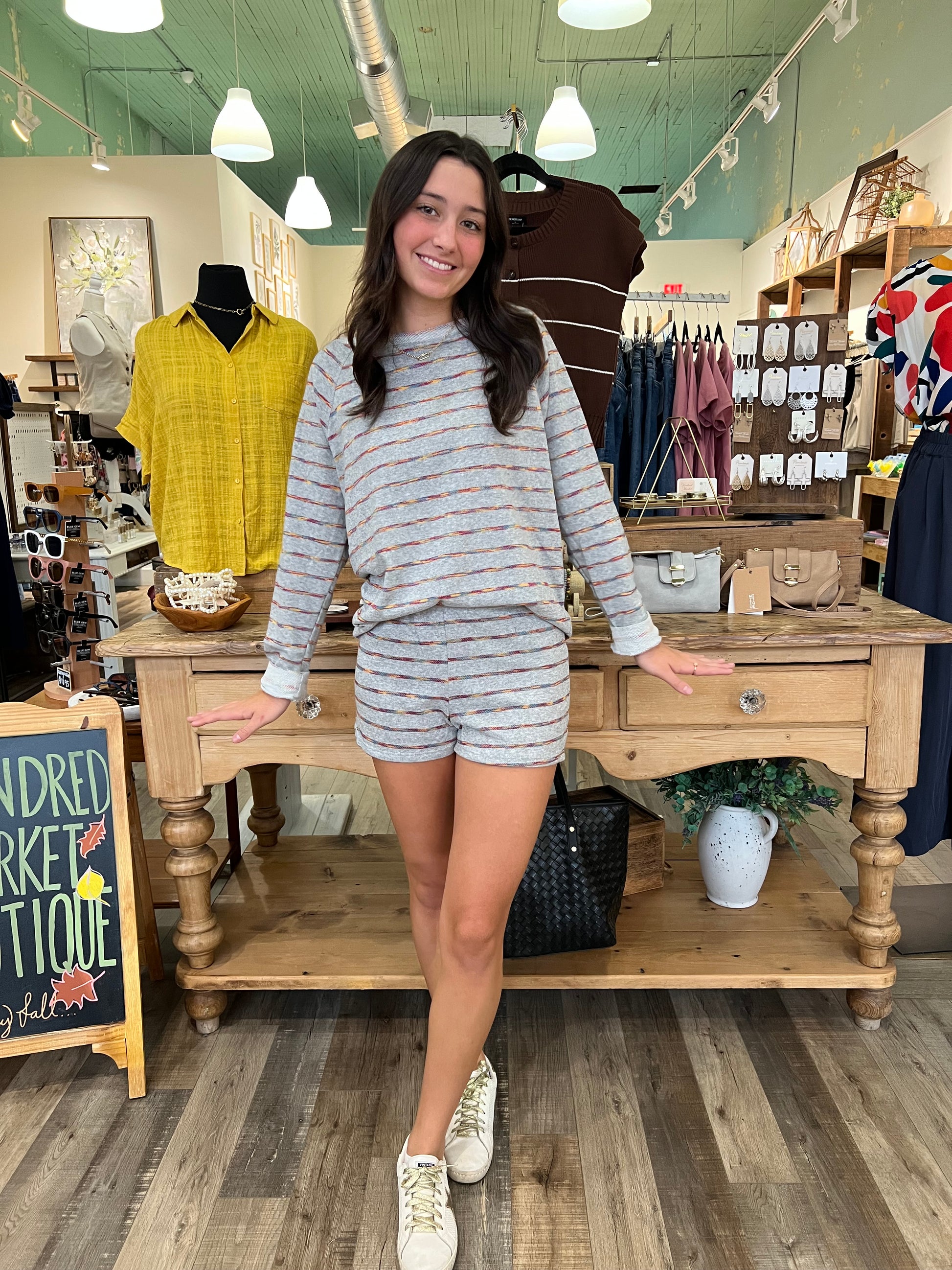 Vanessa Gray Stripe Sweater - Set